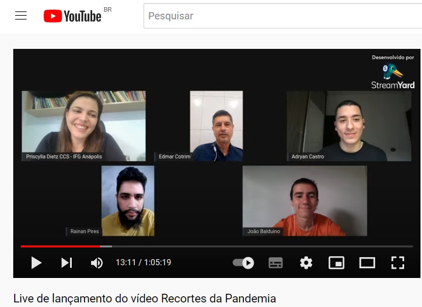 A equipe do projeto de extensão promoveu uma live especial que foi transmitida na tarde desta segunda, 7, no canal do IFG Anápolis no YouTube. Na ocasião, eles abordaram os bastidores de gravação e explicaram com mais detalhes sobre como foi o andamento do projeto de extensão nos últimos três meses. A produção do vídeo teve a coordenação da jornalista Priscylla Dietz e a supervisão do redator Edmar Cotrim, ambos servidores da Coordenação de Comunicação Social do Câmpus Anápolis. Também colaboraram os seguintes estudantes bolsistas: João Pedro Balduíno e Rainan Pires. O projeto de extensão ainda contou com a participação do bolsista Adryan Castro, que ficou mais diretamente envolvido com a Revista Radar IFG.