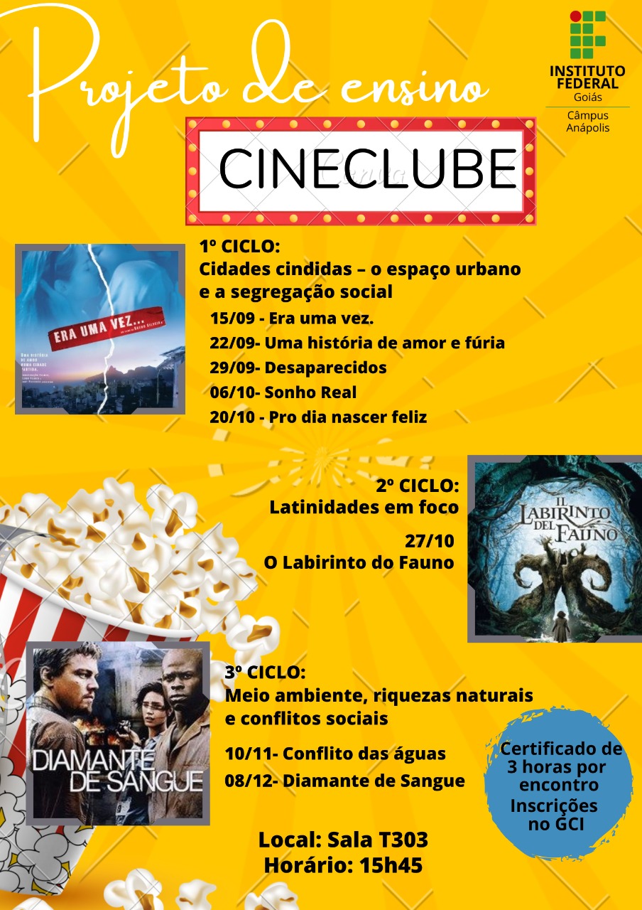 Confira a seguir a programação do Cineclube IFG Anápolis em 2022: