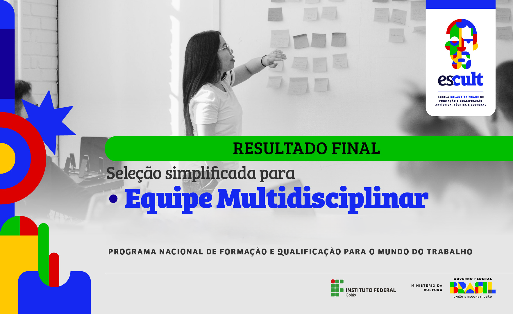 O Instituto Federal de Goiás (IFG), por meio do Centro de Formação e Educação a Distância (CEFOR/EaD), publicou o resultado final do processo de seleção simplificada para equipe multidisciplinar. Os selecionados irão atuar no “Programa Nacional de Formação e Qualificação para o Mundo do Trabalho em Cultura”, um projeto do Ministério da Cultura em parceria com o IFG. Confira aqui o resultado.