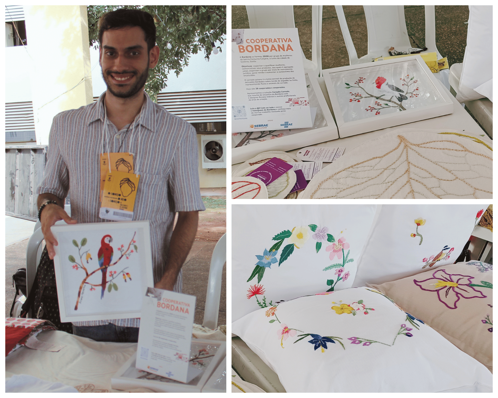 Quem falou a respeito dos bordados produzidos pela Cooperativa Bordana foi o designer e ilustrador das peças, Luiz Felipe, que já trabalha na cooperativa há 4 anos. Formado em Design de Produtos pela Universidade Federal de Goiás, Luiz foi estagiário na Bordana e hoje trabalha com bordadeiras que fazem parte da cooperativa.