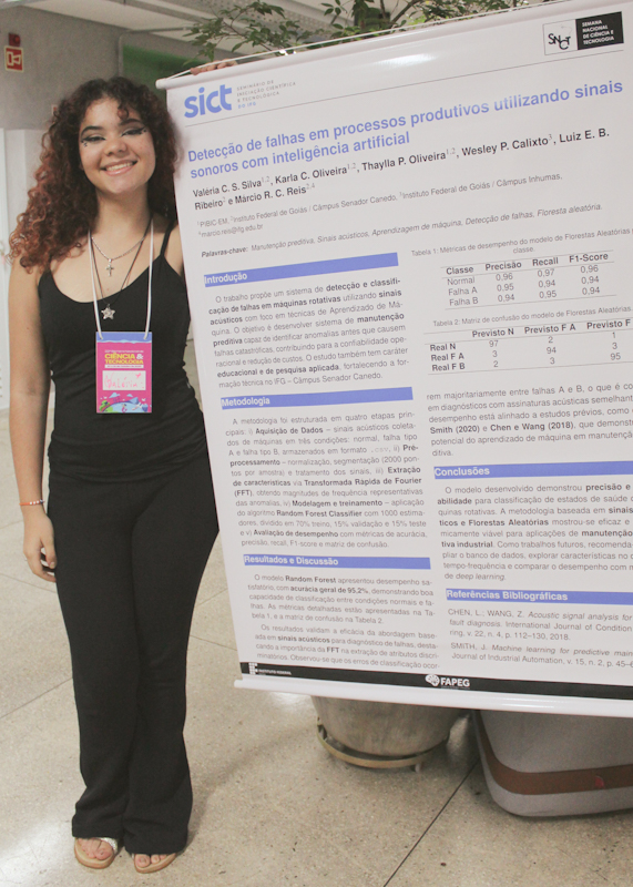 Ela é estudante do curso de Automação Industrial do Câmpus Senador Canedo e foi orientada pelo professor Márcio Rodrigues da Cunha Cruz. Segundo explicou, a detecção de falhas sonoras em máquinas industriais pode evitar problemas futuros e mais graves nas plantas industriais.