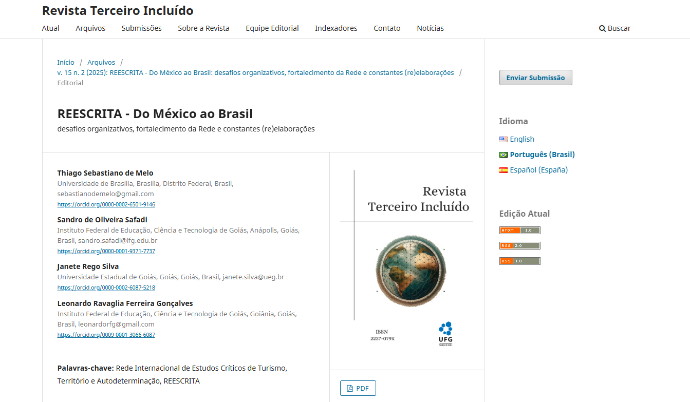 Documento foi publicado pela Rede internacional de Turismo e Território, que tem professor do IFG Anápolis como um de seus coordenadores