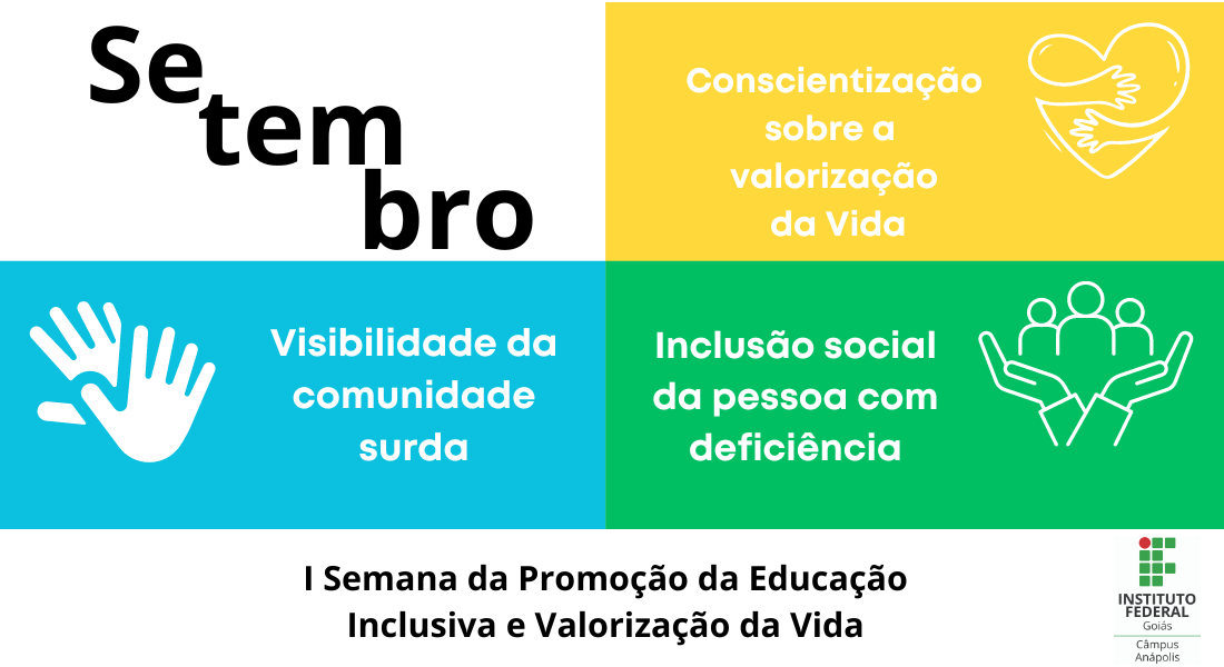 O evento é organizado pela equipe do NAPNE do câmpus e contará com atividades relacionadas ao Setembro Amarelo, Setembro Verde e Setembro Azul