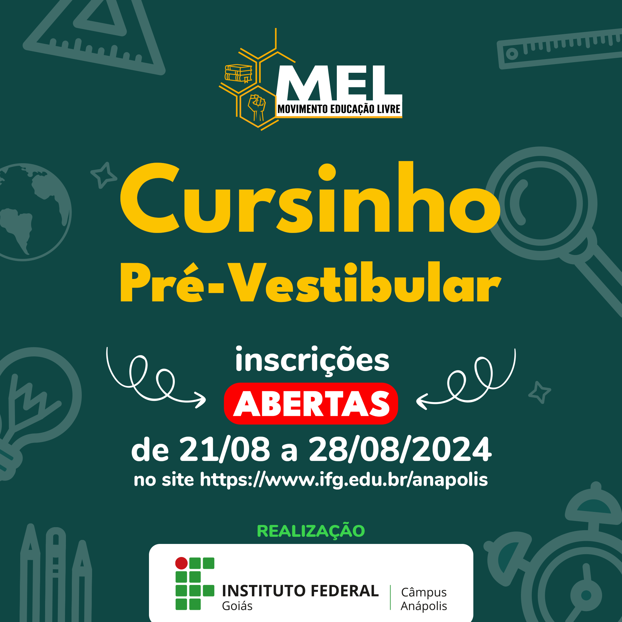 A transmissão será feita pelo YouTube, no canal oficial da EaD IFG