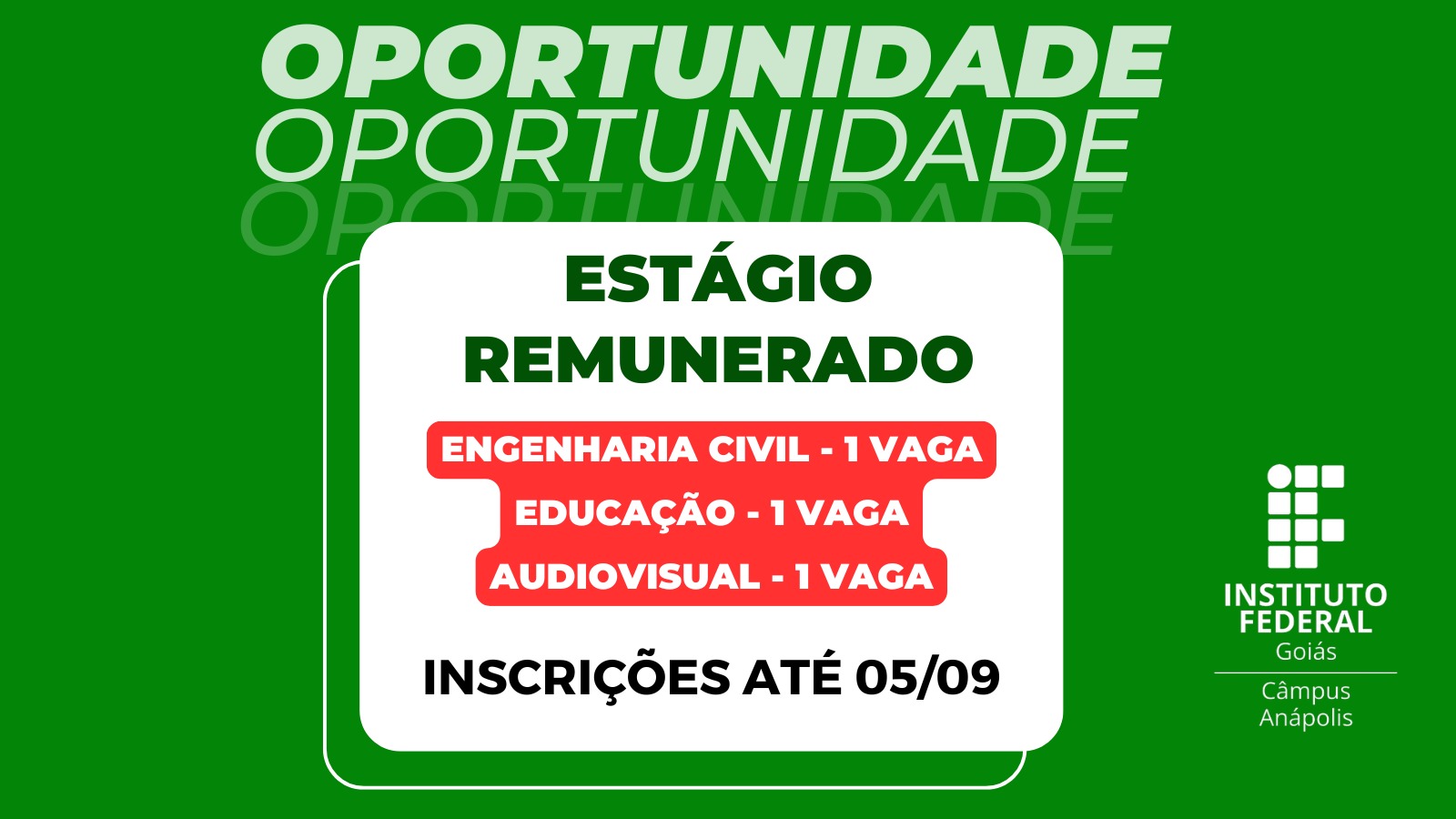 Oportunidades do estágio remunerado foram para áreas de Audiovisual, Biblioteconomia e Construção Civil/Geotecnia