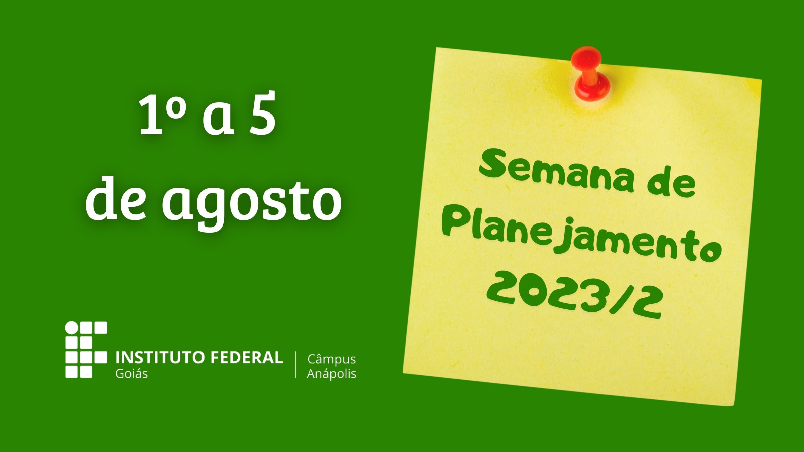Teve início nesta terça-feira, 1º de agosto, a Semana de Planejamento Pedagógico 2023/2 do Instituto Federal de Goiás (IFG) - Anápolis. A programação envolve toda a equipe de...