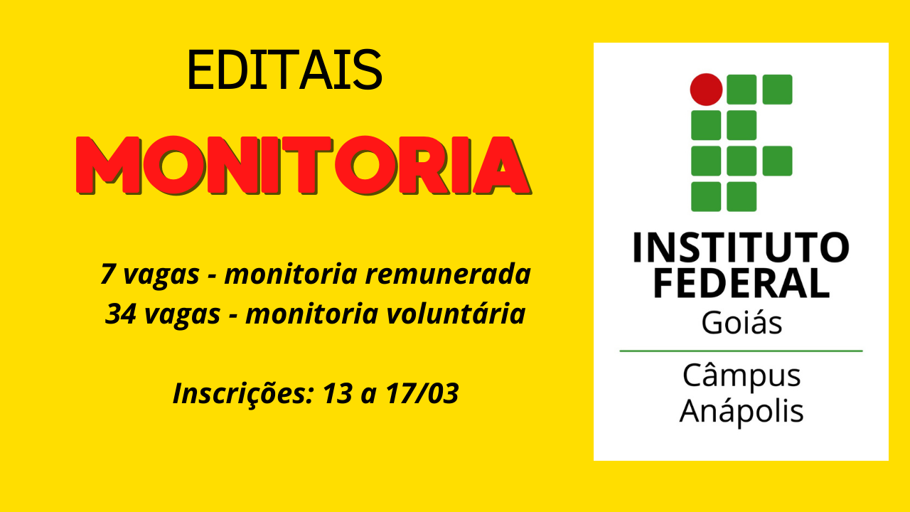 Há vagas para monitoria remunerada e voluntária em diversas disciplinas de cursos do câmpus