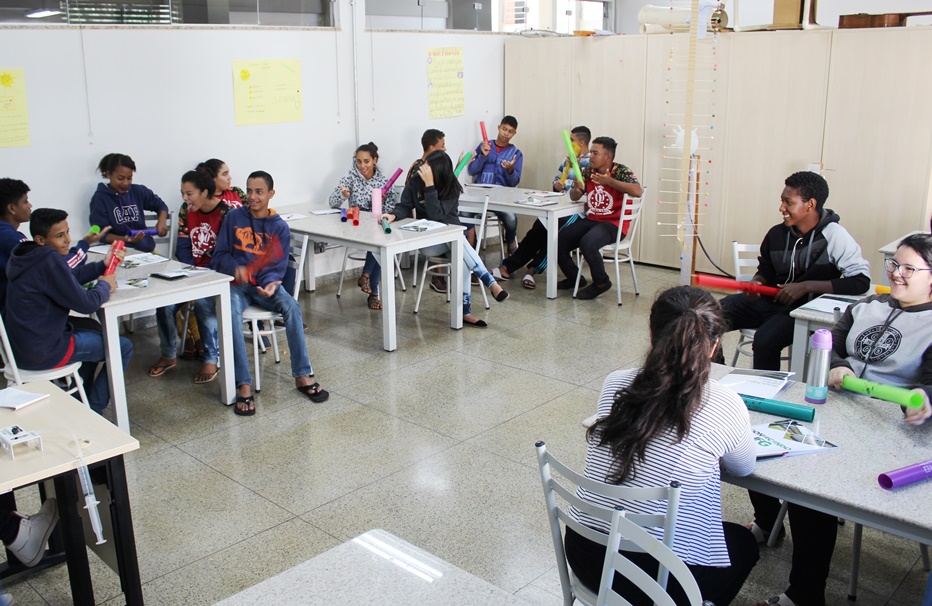 E foi no Laboratório de Física e Matemática que os visitantes assistiram a uma explicação dos estudantes do IFG sobre o funcionamento do som. Em pedaços de canos coloridos entregues aos alunos, as notas musicais se distribuíam, de acordo com o tamanho dos canos, e formavam uma música ao bater os canos de modo ritmado.