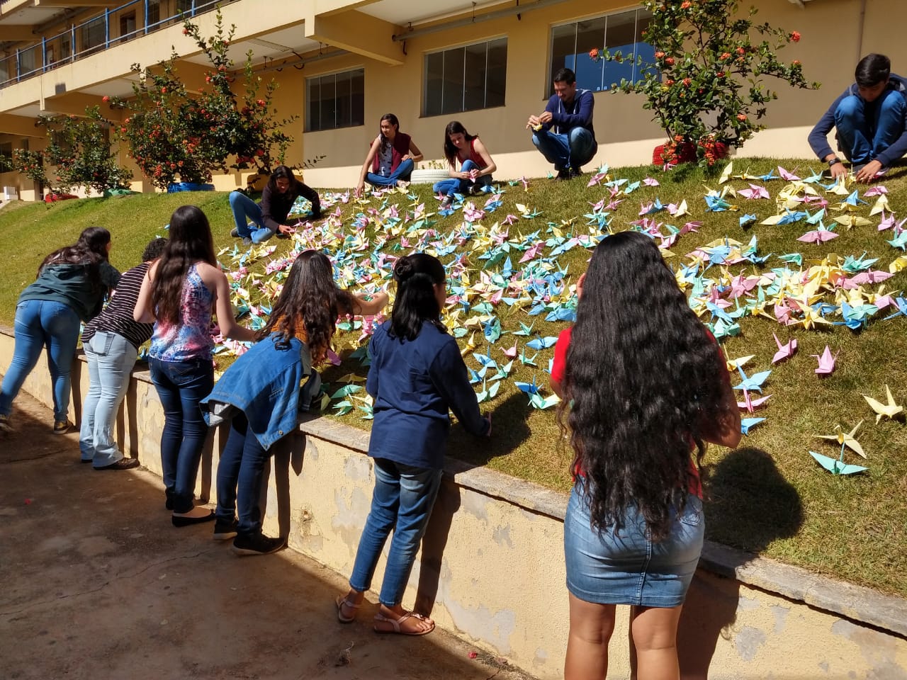 Alunos espalham mil tsurus em área externa do Câmpus Inhumas