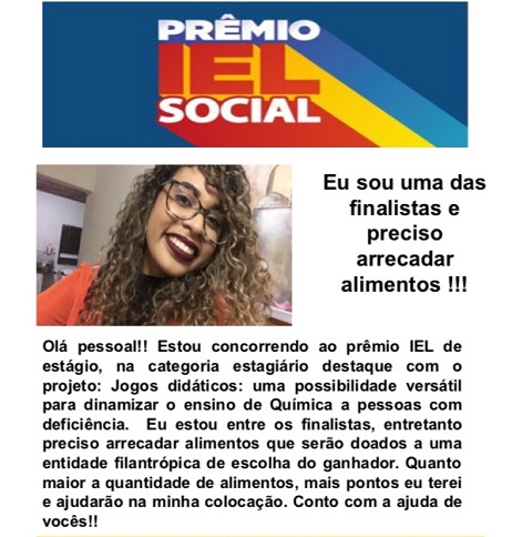 Graduanda da Licenciatura em Química é finalista no Prêmio IEL de Estágio