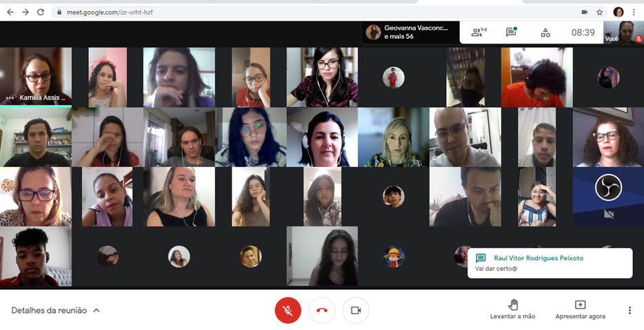 A abertura do encontro foi feita pelo chefe do Departamento de Áreas Acadêmicas, professor Eduardo de Carvalho Rezende, que parabenizou os novos alunos pelo ingresso no Instituto Federal de Goiás e falou da satisfação em recebê-los. A diretora-geral do Câmpus, professora Ana Lucia Siqueira de Oliveira, que também ministrará aulas de Artes aos ingressantes, manifestou boas-vindas e disse sentir enorme prazer em receber os novos alunos. “Vocês estão na melhor instituição pública de ensino do País”, destacou Ana Lucia, que falou do histórico centenário da Rede Federal de Educação Profissional, Científica e Tecnológica e apresentou um videoclipe aos estudantes, com a mensagem de incentivo para que não desistam da Educação, apesar da difícil conjuntura trazida pelo coronavírus.