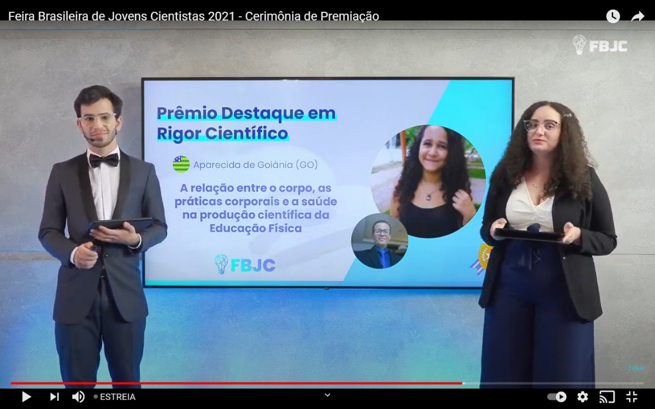 A exemplo desse dinamismo dos/das membros da nossa comunidade, apresentamos a conquista da estudante Dayane Rodrigues, do curso de Edificações do IFG Aparecida de Goiânia, que foi finalista da Feira Brasileira de Jovens Cientistas 2021. Com o projeto “A relação entre o corpo, as práticas corporais e a saúde na produção científica da Educação Física”, orientado pelo professor Neri Emílio Soares Junior, que ministra a disciplina de Educação Física, a jovem conquistou dois prêmios.