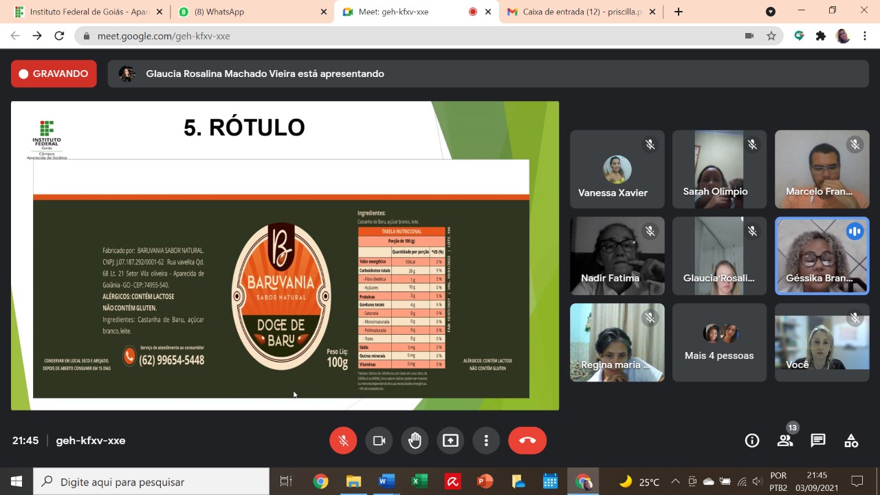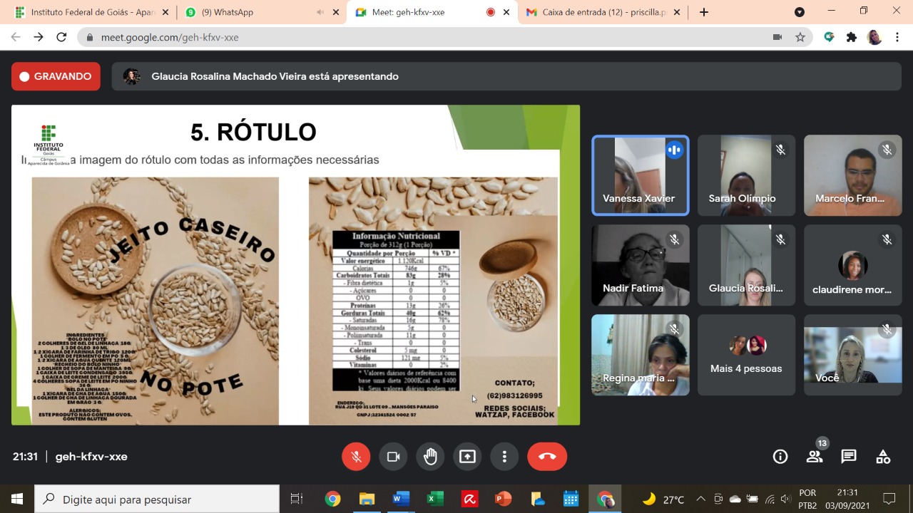O Ensino Remoto Emergencial e a impossibilidade de utilizar os laboratórios do IFG não impediram a qualidade técnica do trabalho. “Foram produtos reais que elas tiveram que fazer na casa delas, testaram lá, se organizaram lá”, conta Gláucia. E o desafio das estudantes não acabou aí. Ao final do semestre, elas apresentaram seus trabalhos a uma banca de professores. Uma demonstração do processo de trabalho e dos produtos lançados pelas então alunas, hoje técnicas em Alimentos, podem ser conferidos abaixo: