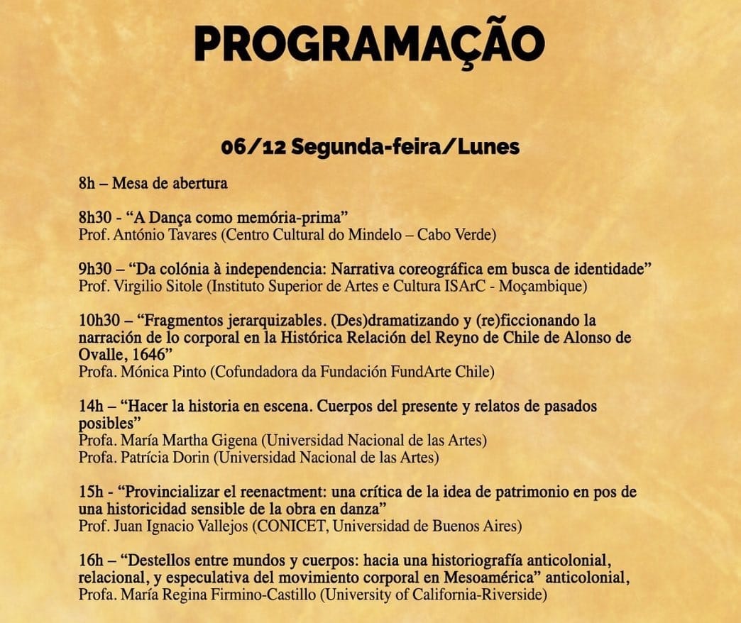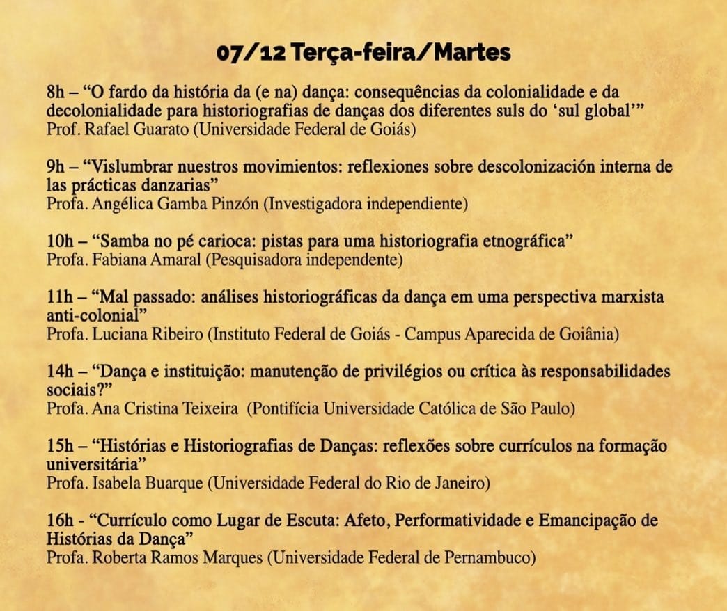 Tendo esse panorama em vista, foi pensado o II Seminário Internacional de História da Dança com a seguinte proposta temática: Quais as especificidades de pensar e fazer historiografias da dança em lugares que passaram pelo processo colonial na condição de colônias?