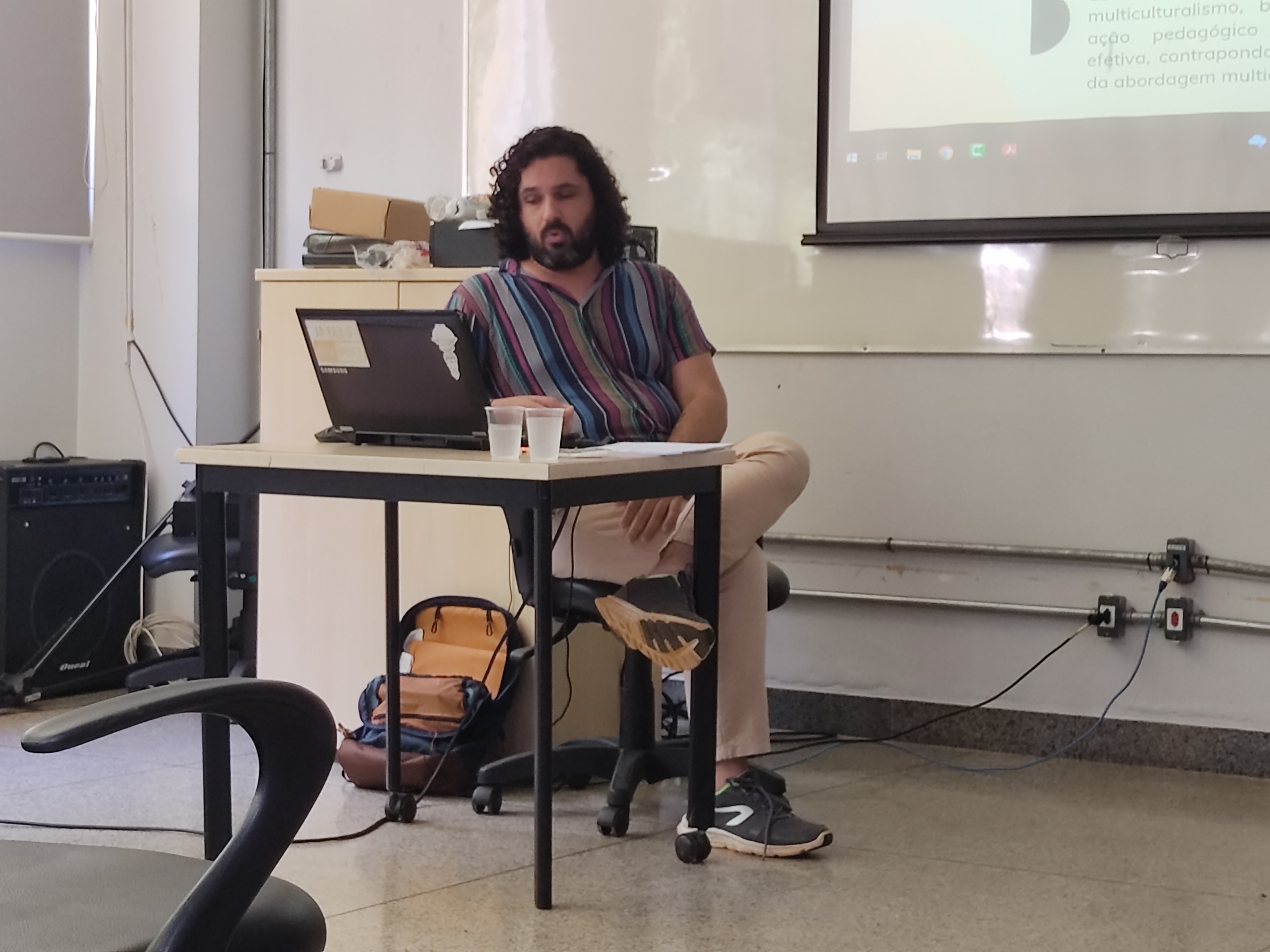 A pesquisa “O Desabrolhar dos Cajuzinhos: a educação musical coletiva com instrumentos musicais como abordagem multiculturalista”, de Igor Viana Monteiro, teve como orientador o professor Me. Eliton Perpétuo Rosa Pereira. A banca avaliadora foi composta também pelos professores Dra. Gilka Martins de Castro Campos (UFG), Dra, Valéria Fabiane Braga Ferreira Cabral (UFG/IFG) e Dr. Cristiano Aparecido da Costa (IFG). Igor e seu orientador foram parabenizados pela banca de defesa, que considerou a pesquisa importante para o ensino da Arte e por contribuir com o enfrentamento do desafio da perspectiva multicultural na educação.