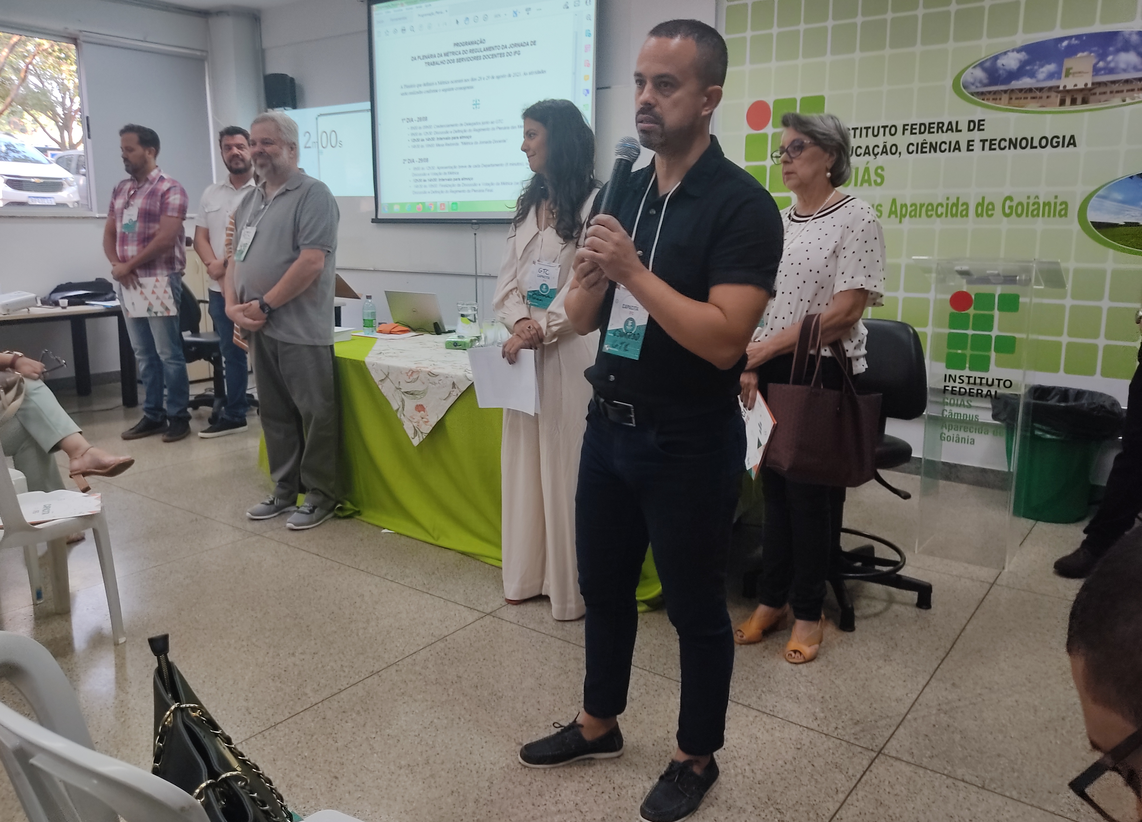 A reitora Oneida Irigon agradeceu o empenho de todos os docentes integrantes da plenária e dos que estão estudando e debatendo o assunto desde 2020. Ela destacou que a gestão do IFG tem o compromisso com os docentes no sentido da aprovação pelo Conselho Superior de uma proposta que represente a realidade de trabalho dos professores, permitindo que todas as atividades sejam computadas na jornada, contra a precarização do trabalho. Ao dar boas-vindas aos docentes presentes à plenária, o diretor-geral do IFG Aparecida, Eduardo Rezende, ressaltou a importância do encontro para toda a instituição.