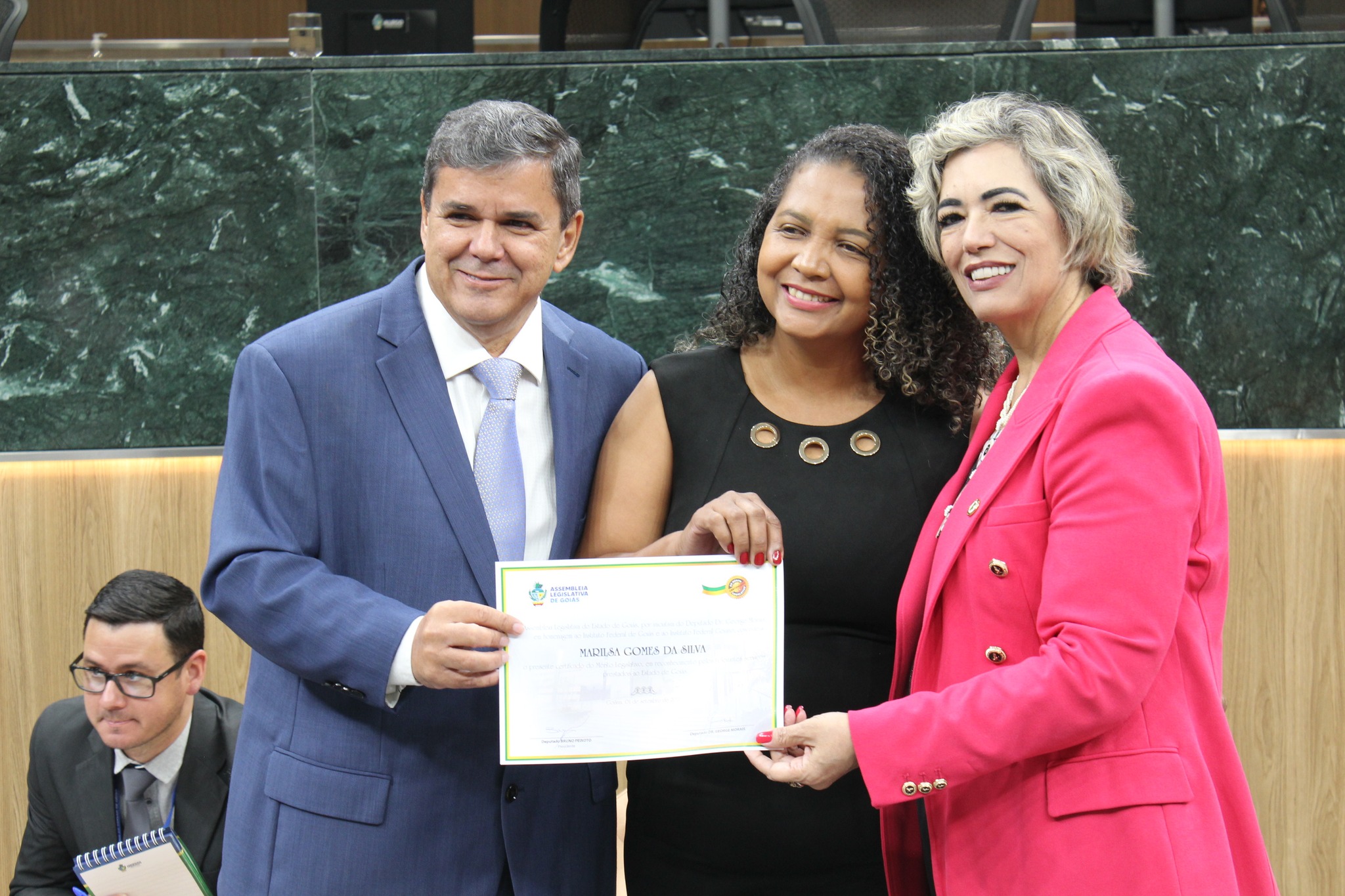 Flávia Moraes foi homenageada pelos reitores do IFG e do IFGoiano, que reconheceram o apoio da deputada aos dois Institutos e a defesa veemente que ela faz da educação pública e gratuita.