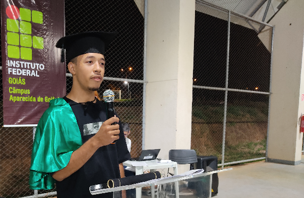 “Presencial ou virtualmente, nós passamos tanto tempo juntos, muitas vezes misturando escola e casa, que seria impossível não construirmos os laços de afetividade que nós construímos”, afirmou o diretor-geral do Câmpus Aparecida de Goiânia do IFG, professor Eduardo de Carvalho Rezende, que presidiu a cerimônia. Eduardo citou problemas de ordem mundial, como a crise climática, para destacar a importância da ciência, da pesquisa e da exploração sustentável dos recursos naturais. Ele instigou os certificandos a trabalhar pela justiça social e pelo desenvolvimento seguro e com igualdades de oportunidades, conforme os anos passados no IFG lhes prepararam.