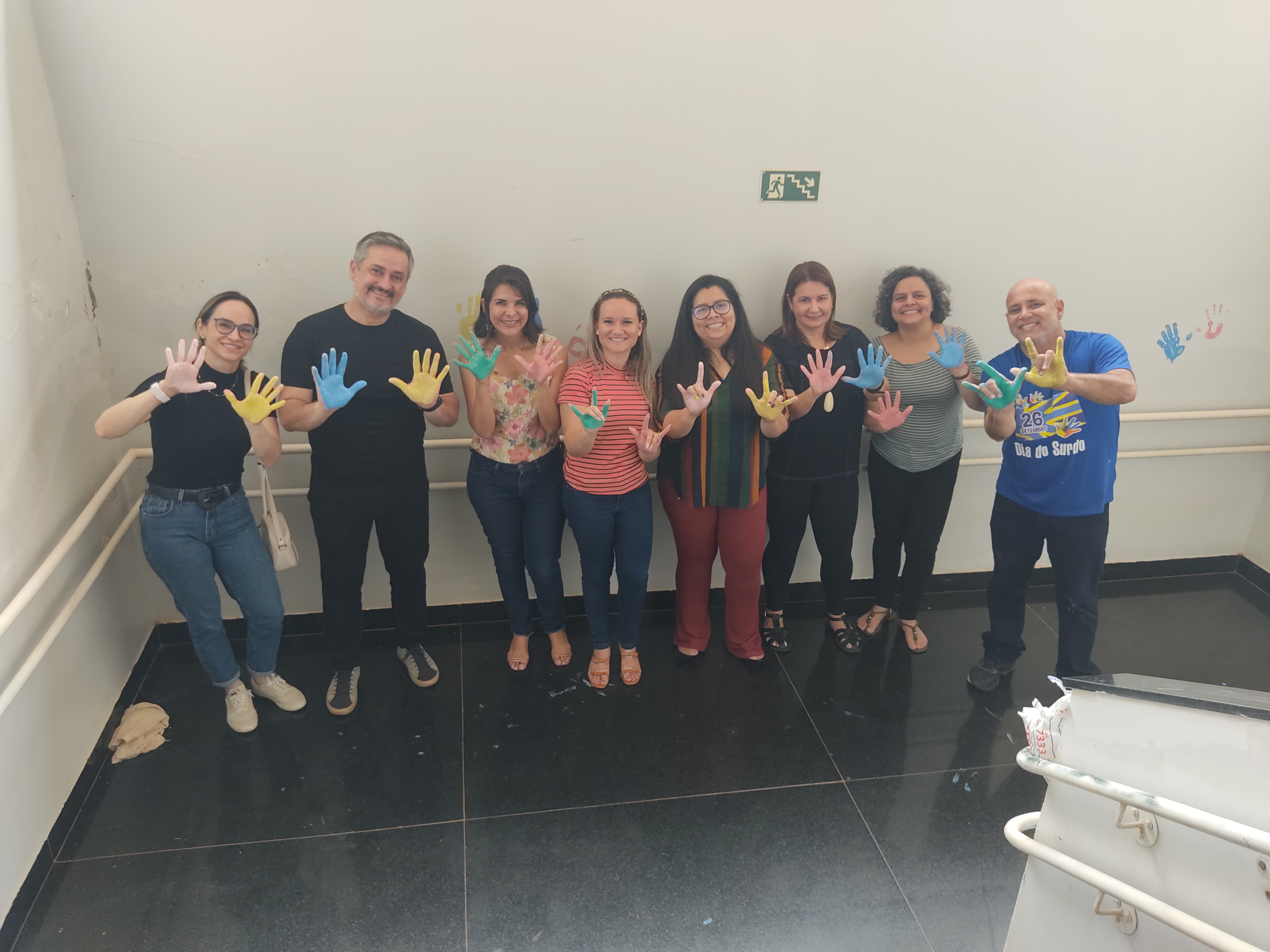 Os visitantes deixaram as marcas de suas mãos no Bloco C, pintadas com tintas coloridas, onde várias outras mãos também já estão registrando o apoio à educação bilíngue. A coordenadora do curso de Pedagogia Bilíngue, professora Waléria Vaz, explica que o traçado de mãos coloridas nos prédios do IFG Aparecida dá visibilidade à língua de sinais como língua de instrução. “Hoje, nós vamos muito além da inclusão. A educação bilíngue afirma a identidade da pessoa surda e valoriza a língua e a cultura da comunidade surda”, afirmou Waléria.