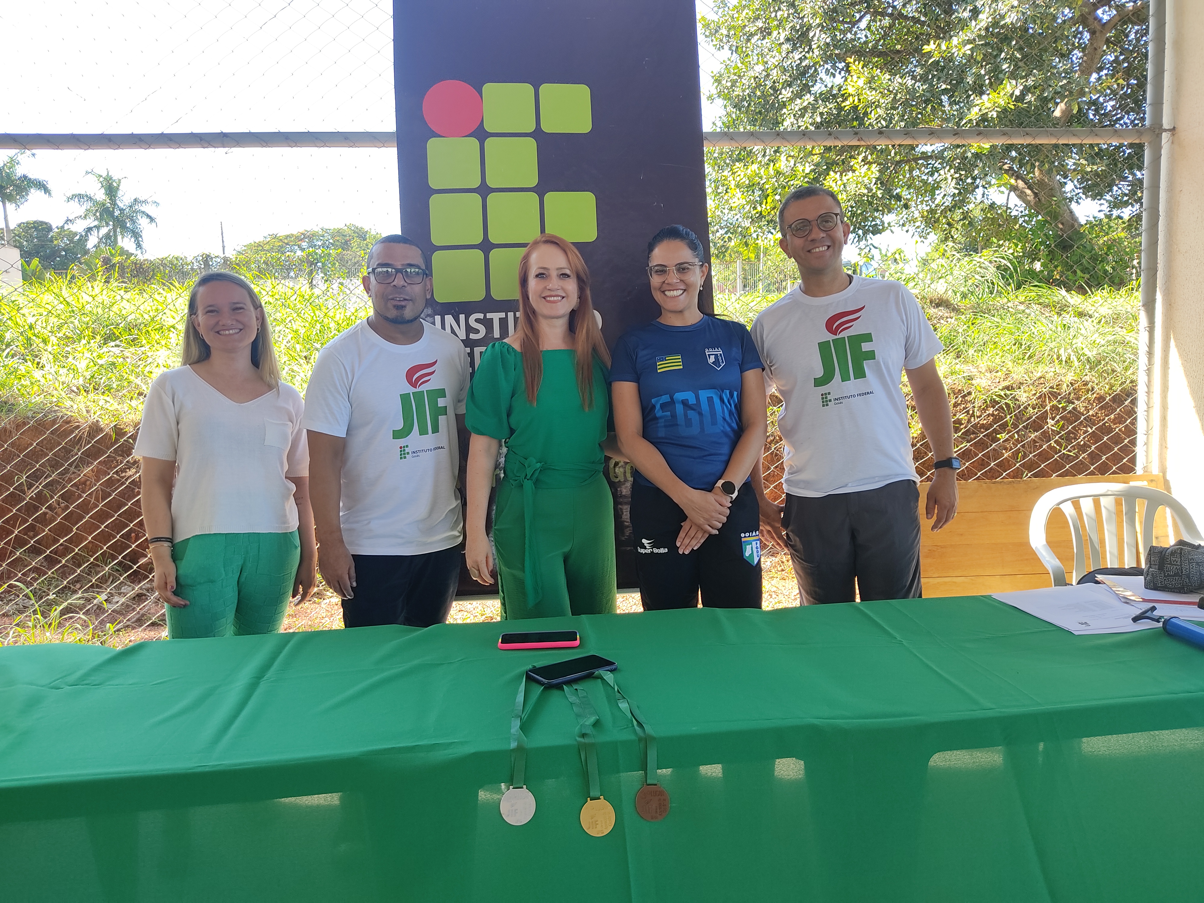 O chefe do Departamento de Áreas Acadêmicas, professor Marcos Flávio Mércio de Oliveira, que também é professor de Educação Física, representou o diretor-geral do Câmpus Aparecida de Goiânia, professor Eduardo de Carvalho Rezende. Marcos Flávio destacou que o diretor Eduardo gosta e valoriza muito o esporte e citou os esforços empreendidos pela direção do câmpus para melhorias na quadra. O chefe do DAA manifestou aos atletas o desejo de bons jogos no JIF Local e recomendou que respeitem os colegas e a arbitragem nas disputas.