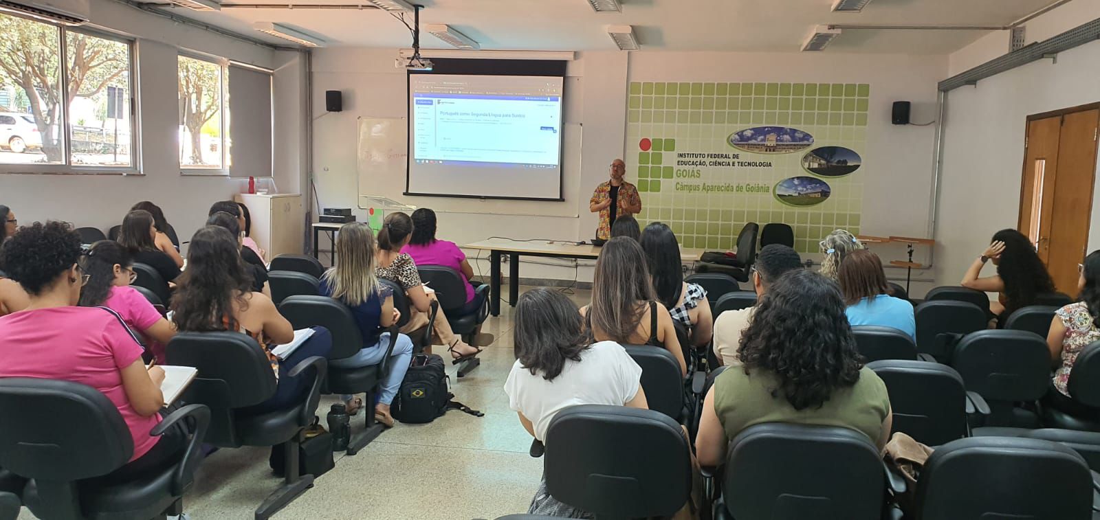 O curso “Formação em Educação Bilíngue de Surdos: sujeitos e práticas pedagógicas“ está sendo ministrado a profissionais de escolas da rede pública (municipal, estadual e federal) e da rede privada conveniada da Região Metropolitana de Goiânia, com o objetivo de aprimorar as competências dos docentes e profissionais da rede pública e privada conveniada, visando à melhoria da qualidade do atendimento educacional oferecido aos alunos surdos da região de Aparecida de Goiânia e adjacências. A maior parte das aulas são realizadas presencialmente aos sábados durante todo o dia e 20% do curso é desenvolvido em ambiente virtual.