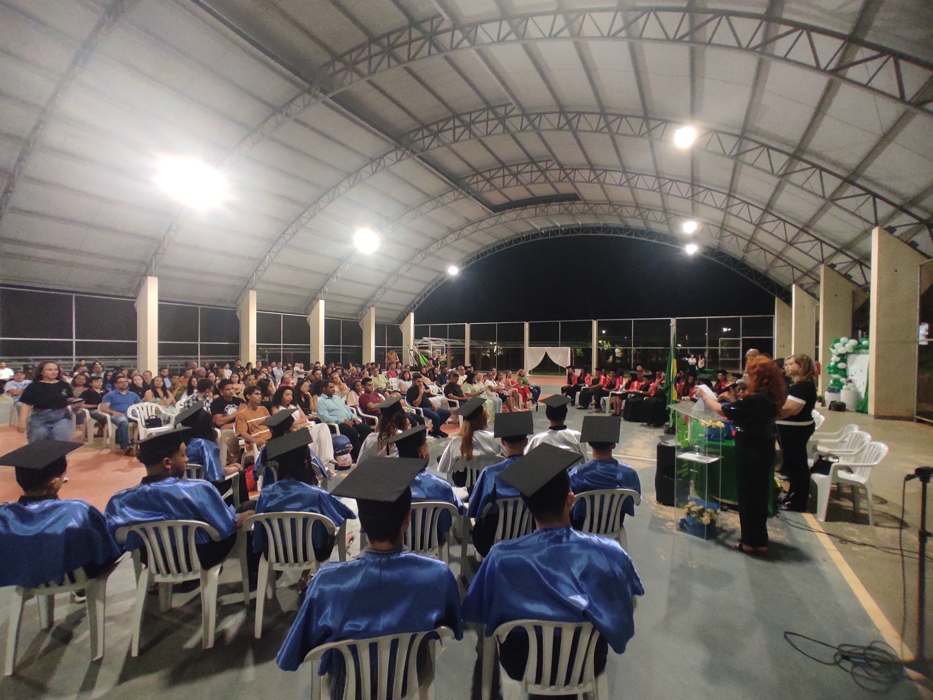 Estudantes que concluíram os cursos técnicos integrados ao ensino médio, em tempo integral e na modalidade EJA dos anos 2023 e 2024/1, participaram da solenidade de formatura na noite desta quinta-feira, 13 de março