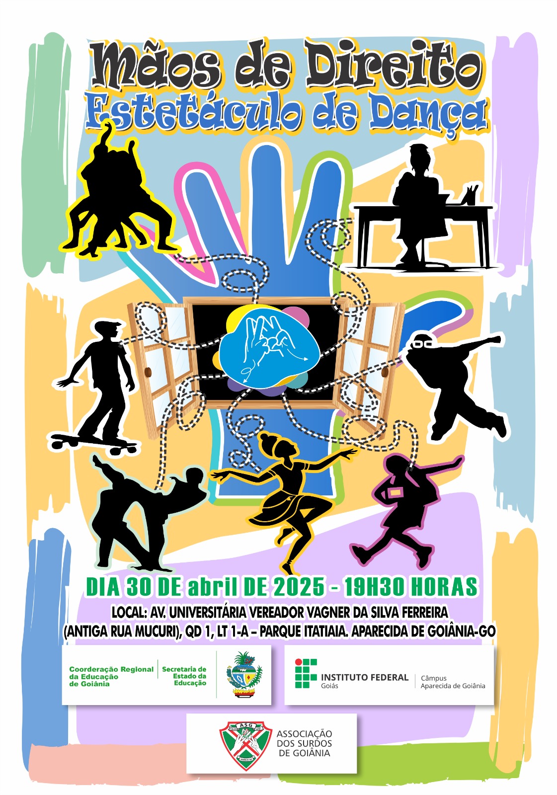 Ainda no mês de abril, está confirmado para o dia 30, o espetáculo "Mãos de Direito", que será realizado no IFG Aparecida, tendo no elenco professores e alunos do Centro Educacional Bilíngue de Surdos de Goiás/Associação de Surdos de Goiânia. A peça vai reunir teatro e dança. Novas programações pela comemoração dos dez anos da Licenciatura em Pedagogia Bilíngue do IFG serão informadas pela coordenação do curso assim que forem confirmadas.