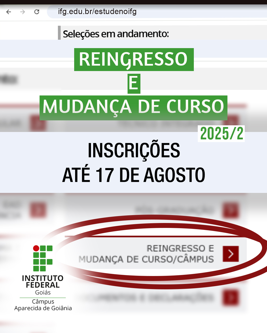 As inscrições podem ser feitas até 17 de agosto, pelo site http://www.ifg.edu.br/estudenoifg