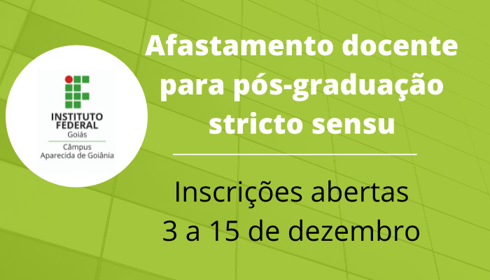 As inscrições podem ser feitas no período de 3 a 15 de dezembro