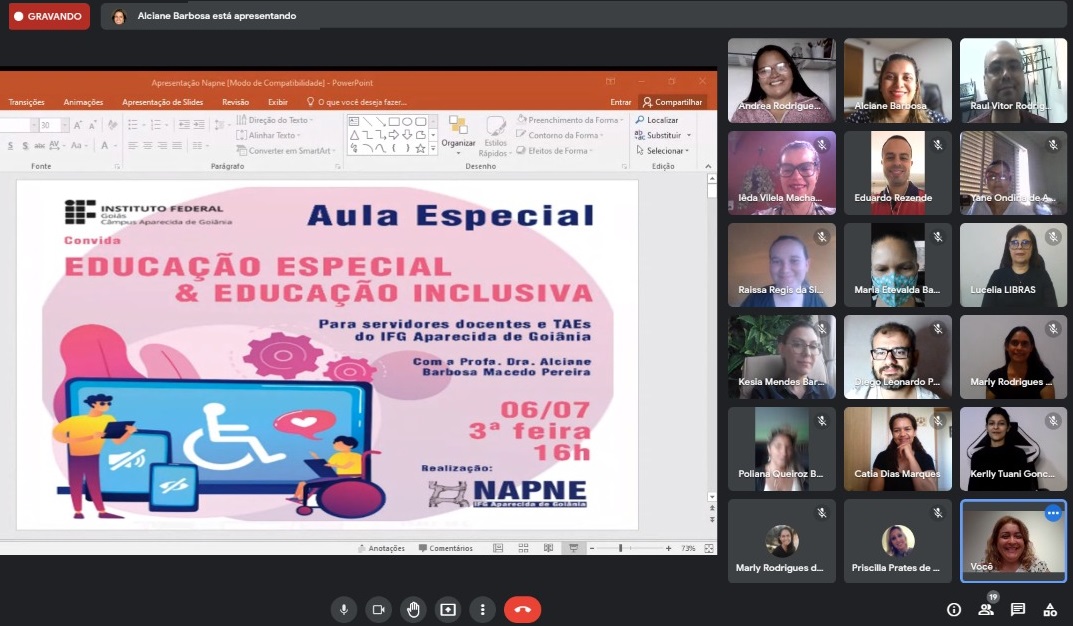 Uma das abordagens da Profa. Dra. Alciane Barbosa foi sobre as momenclaturas Educação Especial e Educação Inclusiva