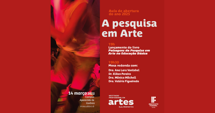 O Mestrado Profissional em Artes do IFG teve a aula inaugural do ano nesta sexta-feira, 14 de março, com programação voltada ao tema “A Pesquisa em Arte” e uma homenagem à mestranda...