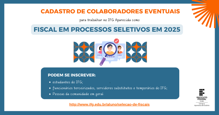 Os chamados Colaboradores Eventuais vão compor cadastro de reserva para trabalhar como fiscais nas seleções de estudantes. As inscrições podem ser feitas no período de 11/10 a 03/11