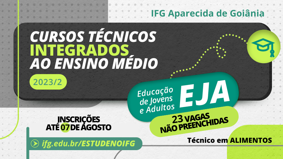 Inscrição e curso são gratuitos. As aulas são no período noturno. Interessado/a deve ir ao IFG com a documentação e efetuar a matrícula até o dia 07 de agosto.