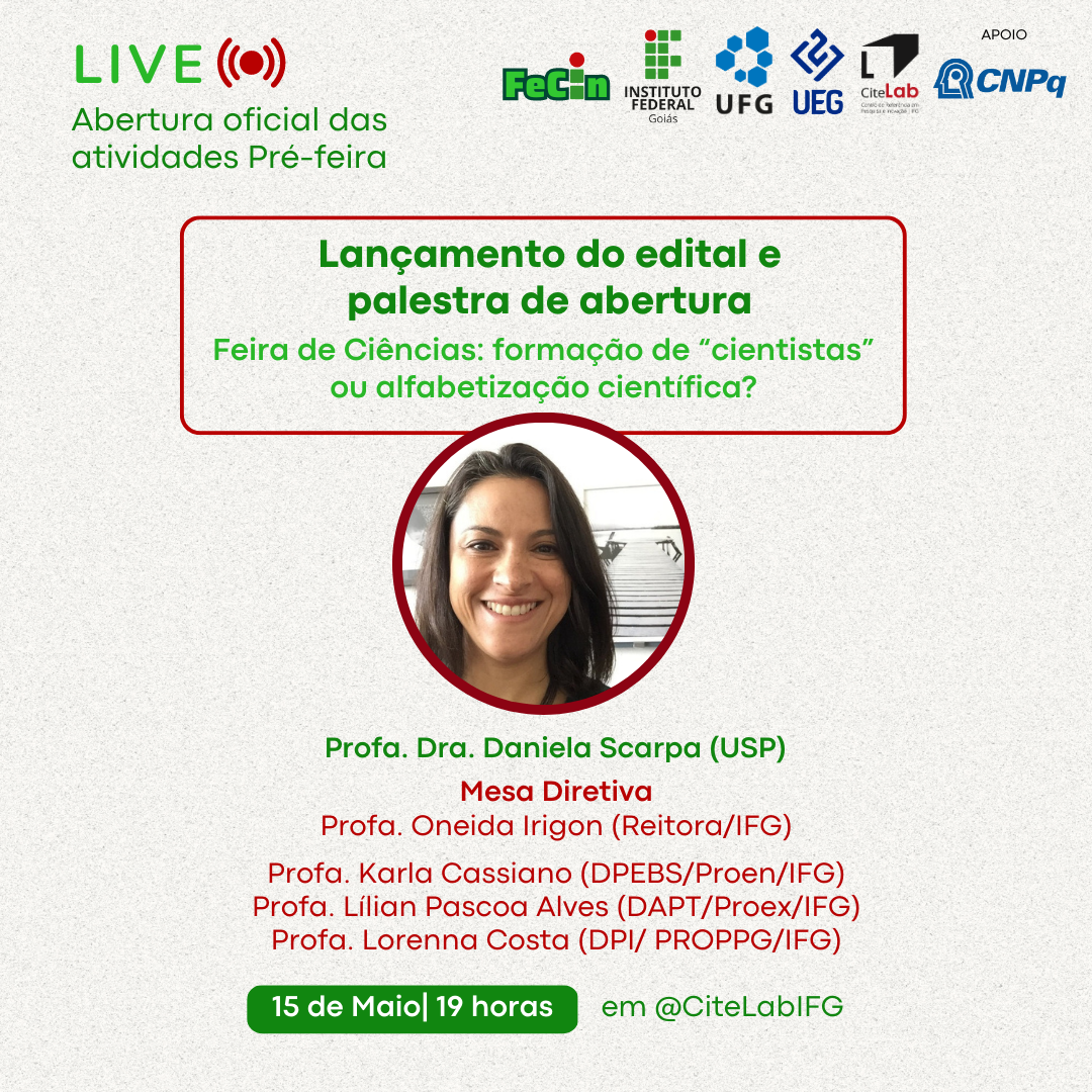 Evento on-line terá palestra com a professora Daniela Scarpa e lançamento do edital com as regras para apresentação de trabalhos científicos