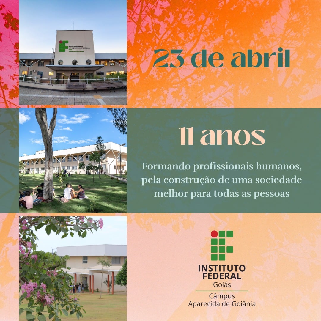 Neste domingo, dia 23 de abril de 2023, o Câmpus Aparecida de Goiânia do IFG completa 11 anos de presença neste município que acolheu a nossa Instituição e a cuja população...