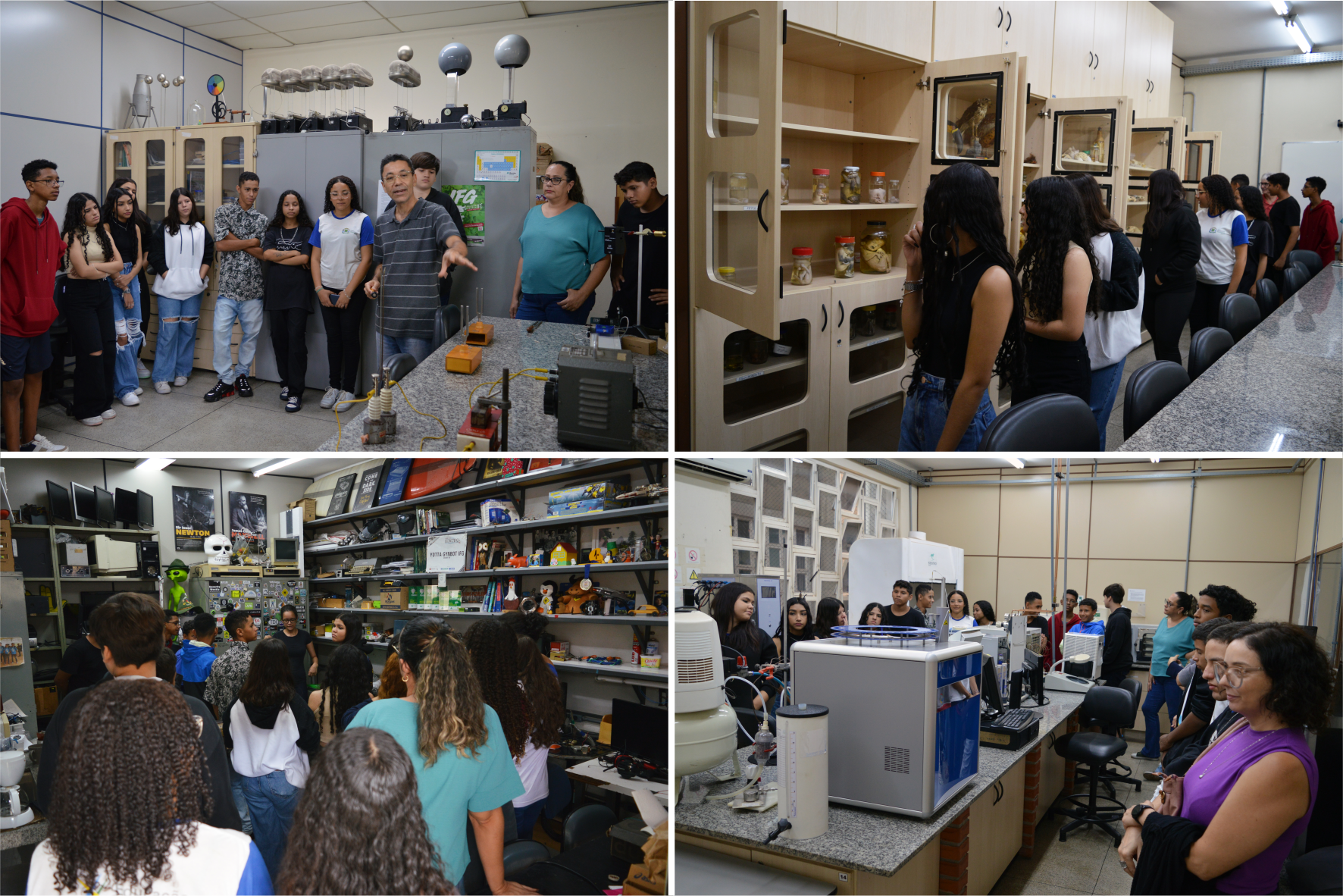 Visitantes nos laboratórios de física, biologia, robótica e química.