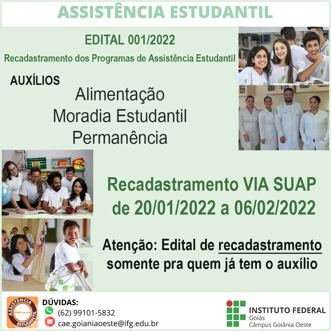 Divulgado edital de recadastramento dos estudantes atendidos pelos programas da Assistência Estudantil do câmpus