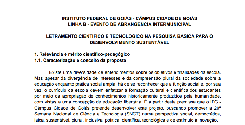 O projeto foi contemplado com recursos no valor de R$ 45.469,00 para realização de ações com a temática "Ciências básicas para o desenvolvimento sustentável"