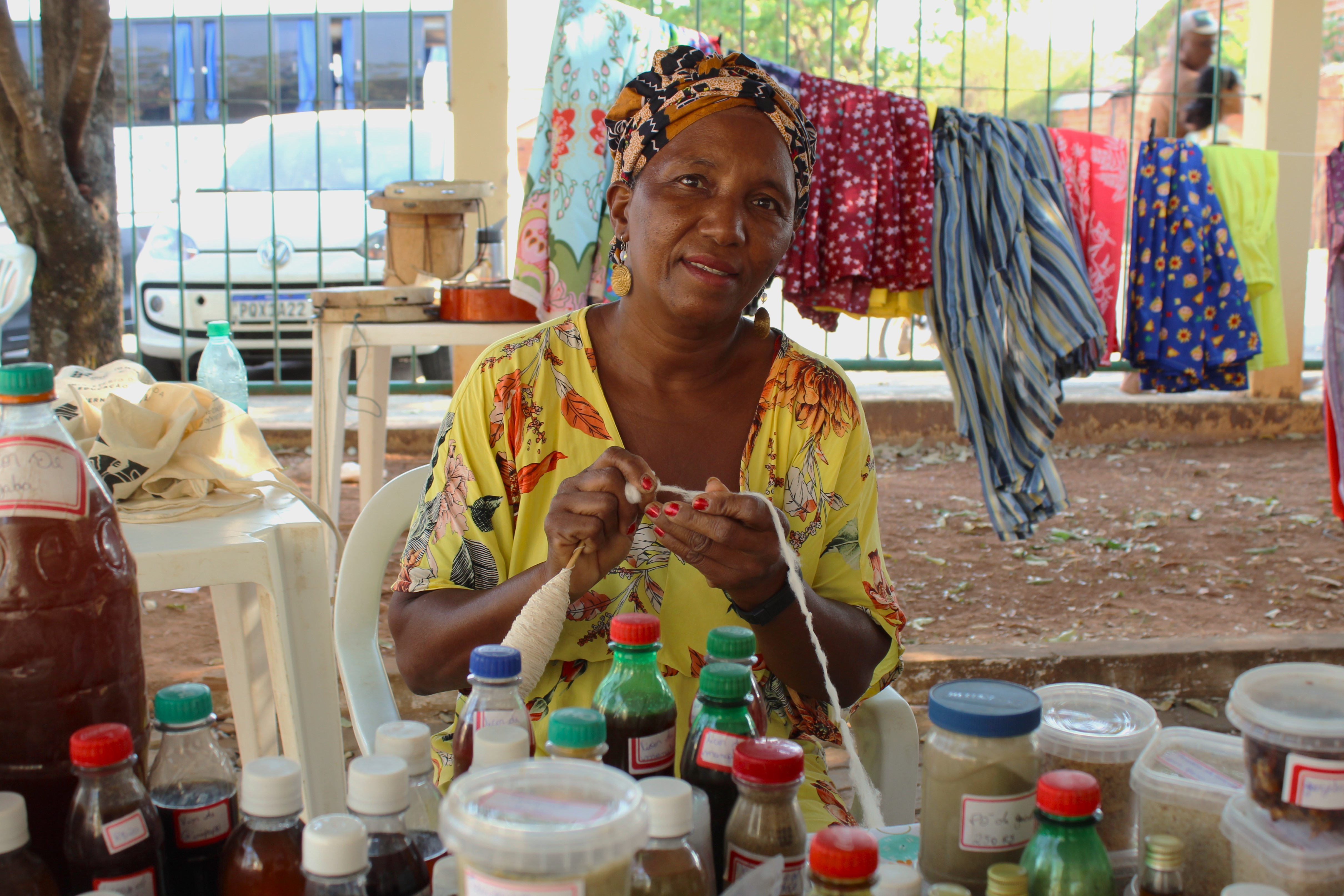 Fiota é moradora do povoado Vão de Almas, do município de Cavalcante, em Goiás, localizado no maior quilombo do Brasil. Segundo ela, “a venda de produtos em feiras faz parte da minha vida há quase 30 anos”. Ela explicou que: “no IFG Uruaçu, é a segunda vez que venho. Vim ano passado e agora neste ano, mas faço feiras em Alto Paraíso, Cavalcante, Brasília”, conta.