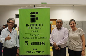 Alunos e servidores do Câmpus Aparecida de Goiânia do Instituto Federal de Goiás (IFG) festejaram nesta segunda-feira, 24, o aniversário de cinco anos do Câmpus. “Estamos deixando de ser um câmpus em implantação e entramos agora em uma fase consolidada, o que está sendo possível em função do empenho de docentes e técnicos administrativos e a dedicação dos alunos, que são nossa razão de existir”, afirmou a diretora geral Ana Lucia Siqueira. A comemoração foi dividida em dois momentos, à tarde e à noite, para que toda a comunidade acadêmica pudesse participar. A comemoração foi prestigiada pelo reitor do IFG, Jerônimo Rodrigues da Silva, pelo Diretor Executivo do Instituto, Adelino Cândido Pimenta e pelos pró-reitores de Ensino, Adriana dos Reis Ferreira, de Administração, Ubaldo Eleutério, e de Pesquisa e Pós-Graduação, Ruberley Rodrigues de Souza.
