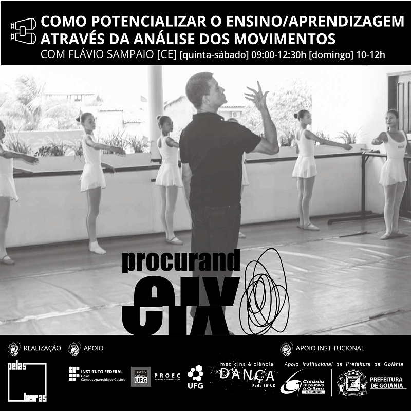 Em outra frente, o “Workshop de práticas de ensino do Balé – Estudos anatômicos e didáticos” será ministrado pelo professor Flávio Sampaio, com duração de 10 horas. Para esta atividade serão selecionados, via currículo e carta de intenção, 20 professores de dança de escolas e academias públicas e privadas. O Workshop será ministrado no Centro Cultural UFG no seguinte período:
