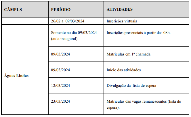 Para efetivação matrícula, as candidatas deverão apresentar os seguintes documentos (original e fotocópia), no dia da primeira aula: ficha de matrícula, carteira de identidade e CPF.