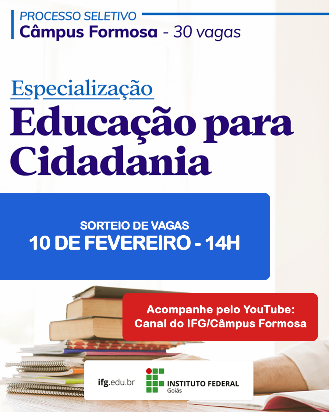 Acompanhe o sorteio de vagas do curso de Especialização em Educação para a Cidadania pelo YouTube: https://www.youtube.com/watch?v=xV3JRUpY9sA