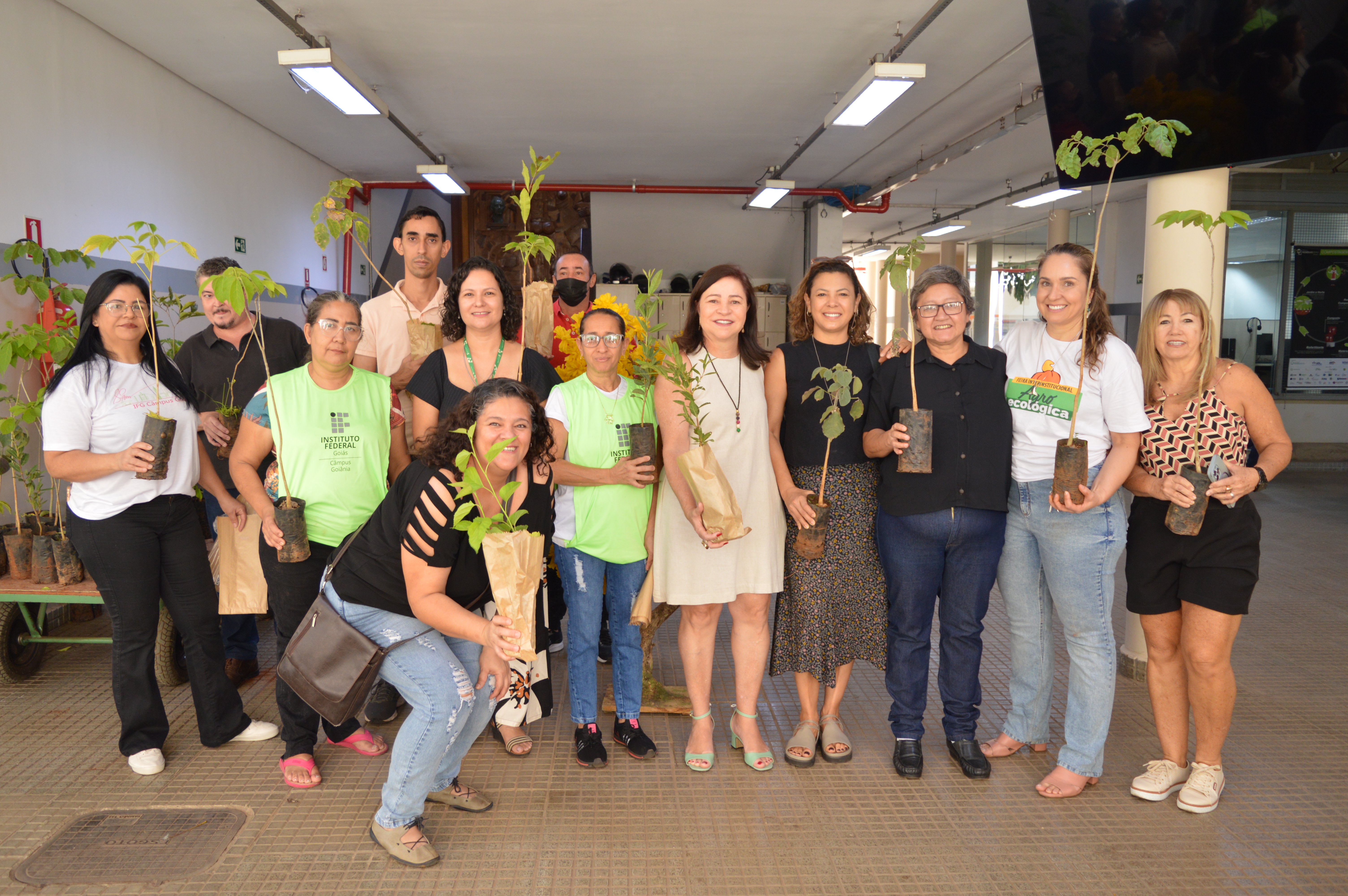 A ação contou também com a doação de mudas típicas do Cerrado e o plantio de novas árvores no âmbito do Câmpus Goiânia. Segundo a diretora da instituição, professora Adriana dos Reis Ferreira, algumas árvores ao redor do câmpus tiveram de ser retiradas após laudo da Agência Municipal do Meio Ambiente (Amma) que as condenavam por já estarem no fim da vida ou por estarem ocas. “Dentro desse laudo, eles colocam que a gente teria que retirar e fazer o plantio imediato de outra espécie que fosse autorizada por eles. Quem indica qual árvore que nós devemos plantar é a Amma. E dentro dessas espécies está o oiti”.