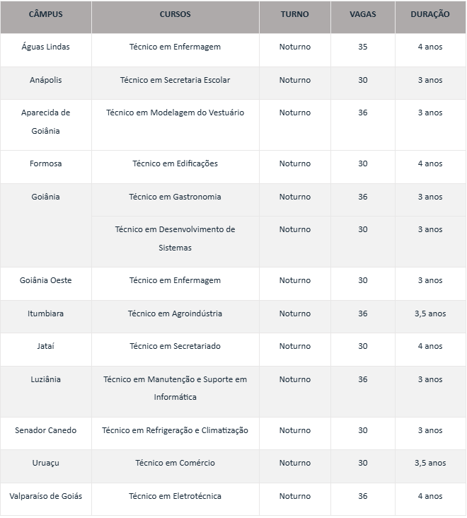 O Instituto Federal de Goiás (IFG) abriu nesta segunda-feira, 2, as inscrições para o processo seletivo para ingresso nos cursos técnicos integrados ao ensino médio, na modalidade educação de jovens e adultos (EJA). São ofertadas 425 vagas, para ingresso no primeiro semestre de 2025 e todos os cursos são noturnos.
