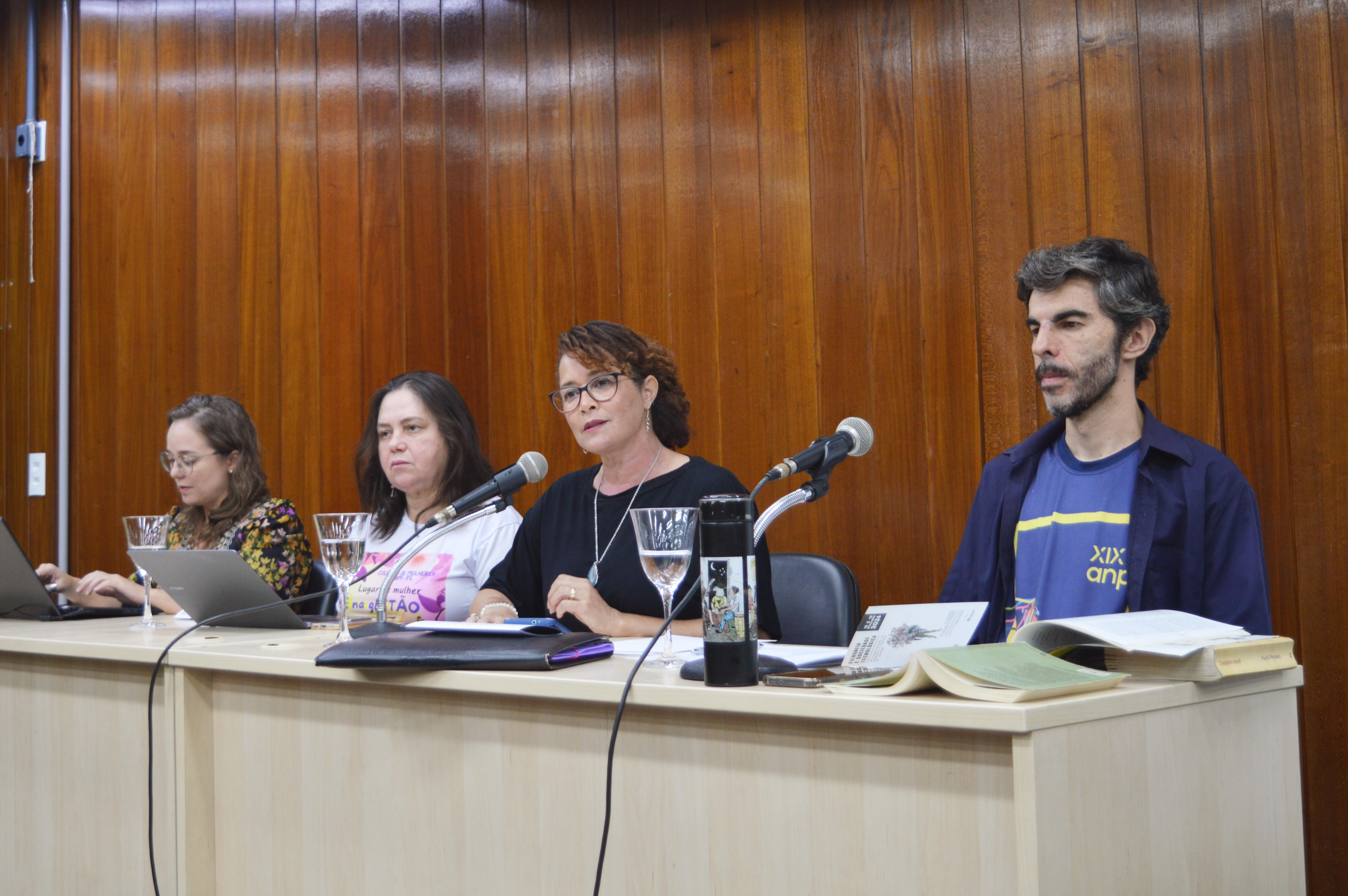 A primeira mesa do seminário abordou o tema Tecnologia, Sujeito e Sociedade: distopias contemporâneas e reconstrução de existências e saberes, que buscou discutir e pensar sobre a subjetividade dos indivíduos em um meio permeado por tecnologias que, ao mesmo tempo que são necessárias, também são veículos de alienação e vitrine de vertentes de pensamentos opressora das minorias, meio ambiente e da diversidade. Compuseram a mesa as docentes do IFG Maria Eliane Rosa de Souza, Marcela Castanheira e Iarle Ferreira e o professor Eduardo Carli.