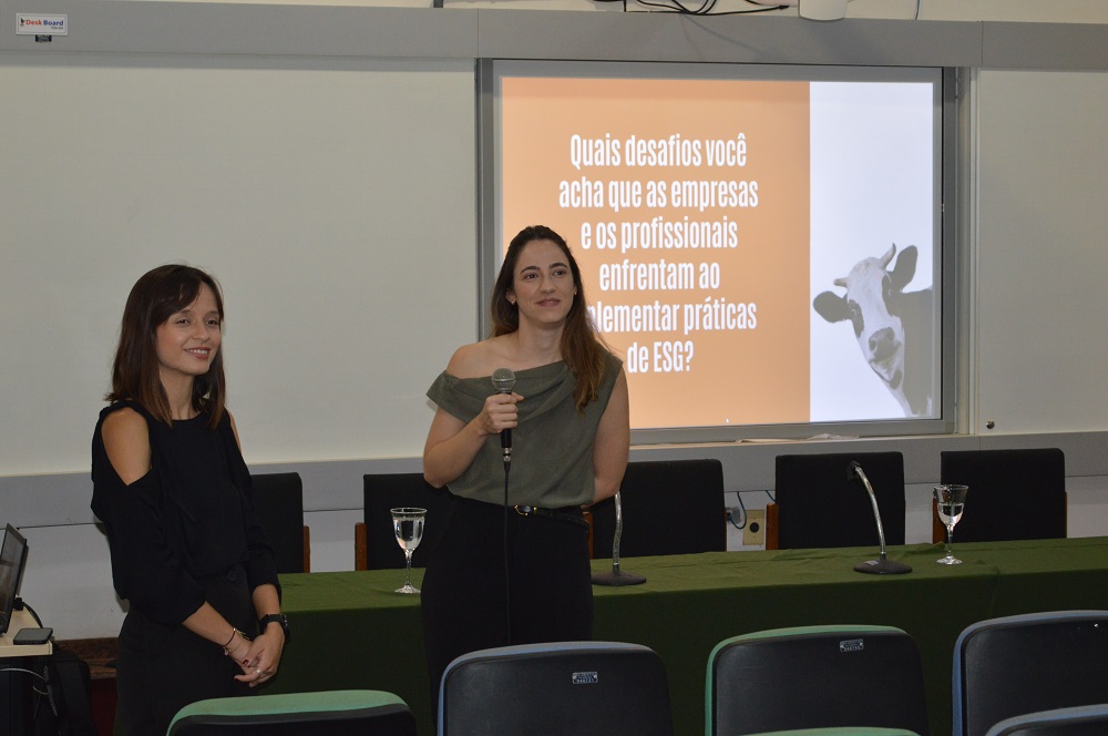 Palestrantes Thaís Borges de Melo e Laura Machado de Souza Azevedo falaram sobre ESG na Prática.