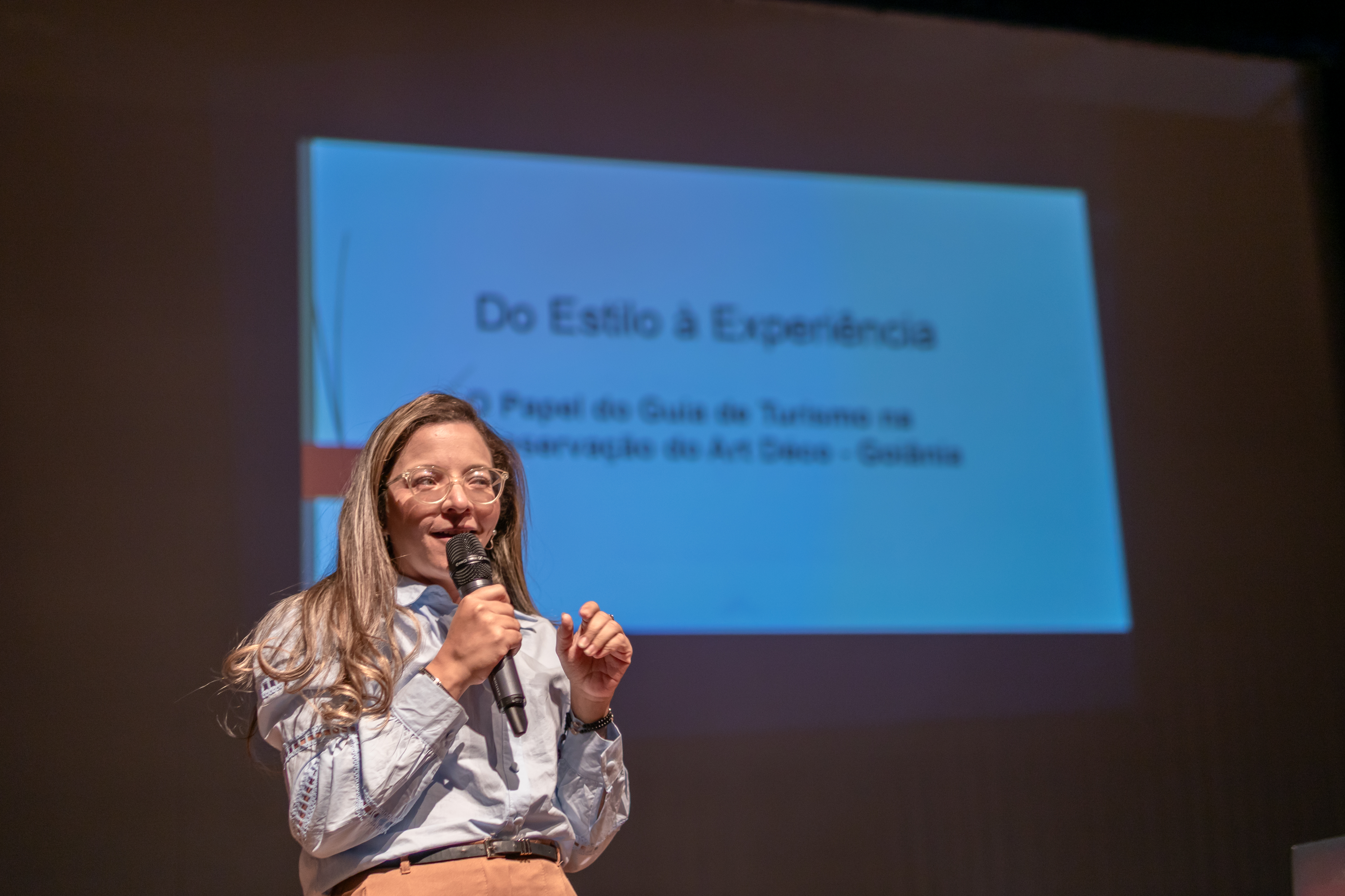 Izabella Luzia Rodrigues, presidente do SindTur-GO, ministrou a palestra Do estilo à experiência: o papel do guia de turismo na preservação do Art Déco.