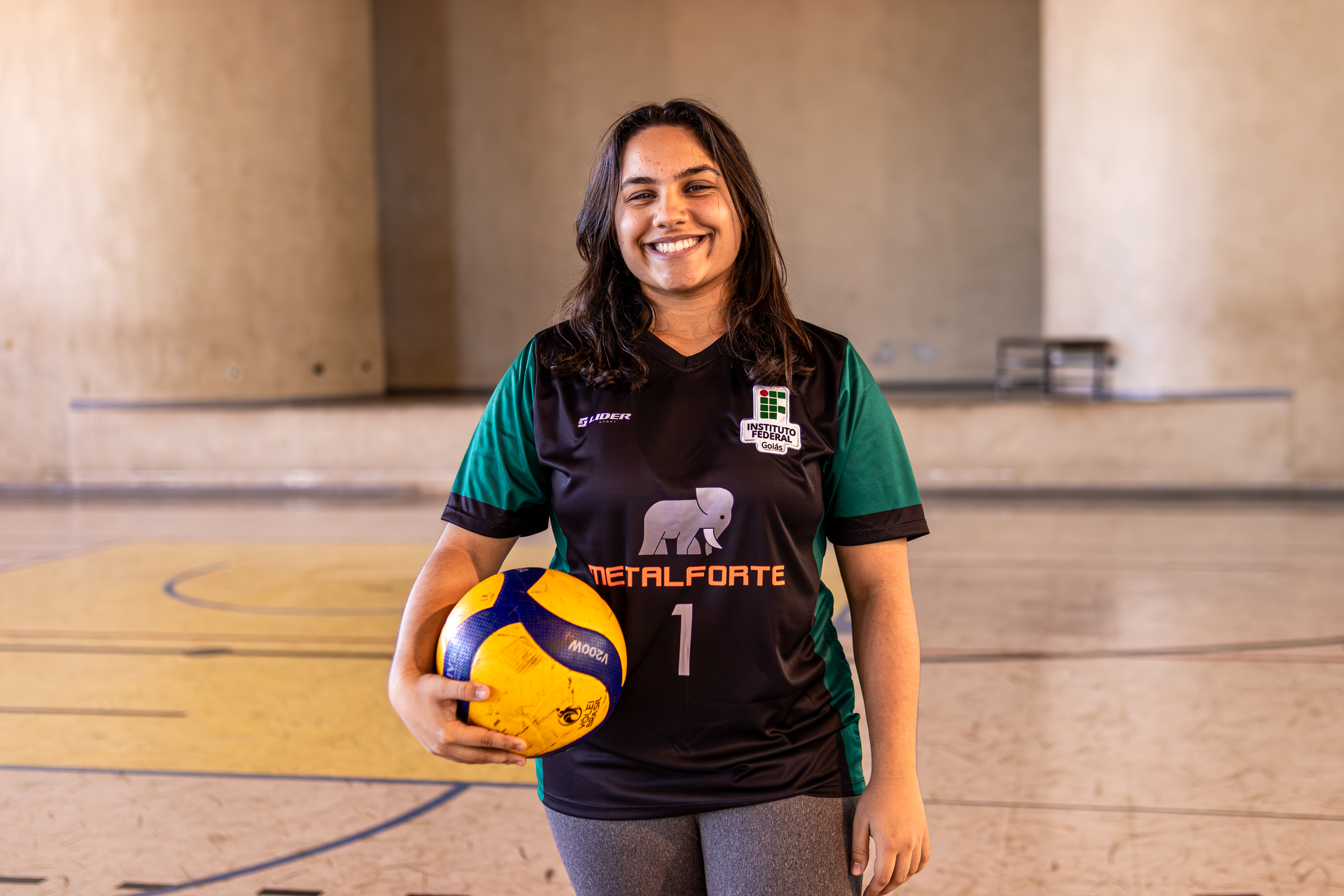 Capitã do time de voleibol feminino do Câmpus Goiânia do IFG, Acsa Borges, aluna do curso técnico integrado em Instrumento Musical.