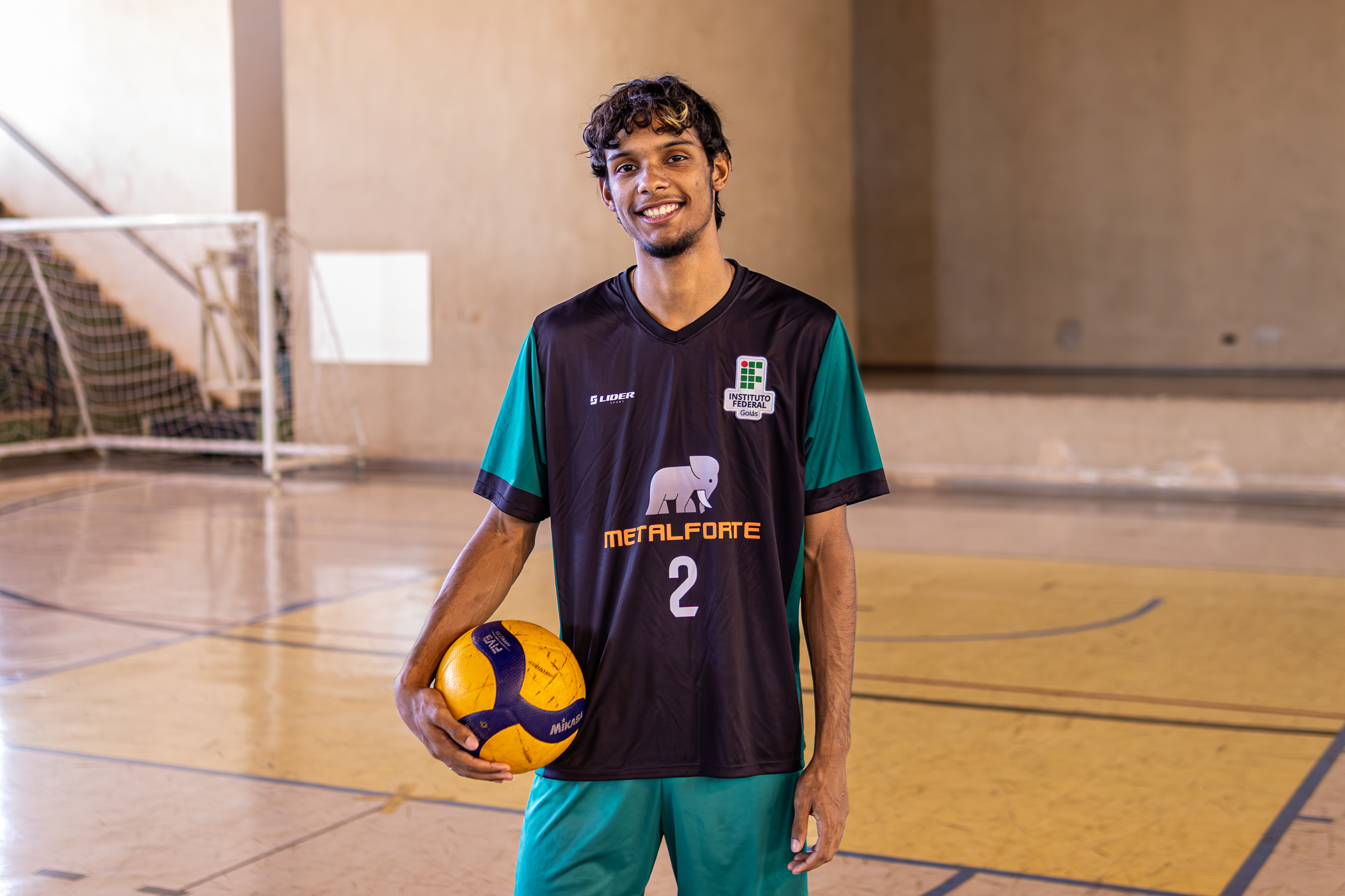 Rogério Souza, estudante do curso técnico integrado em Edificações, é o capitão do time de voleibol masculino do Câmpus Goiânia.